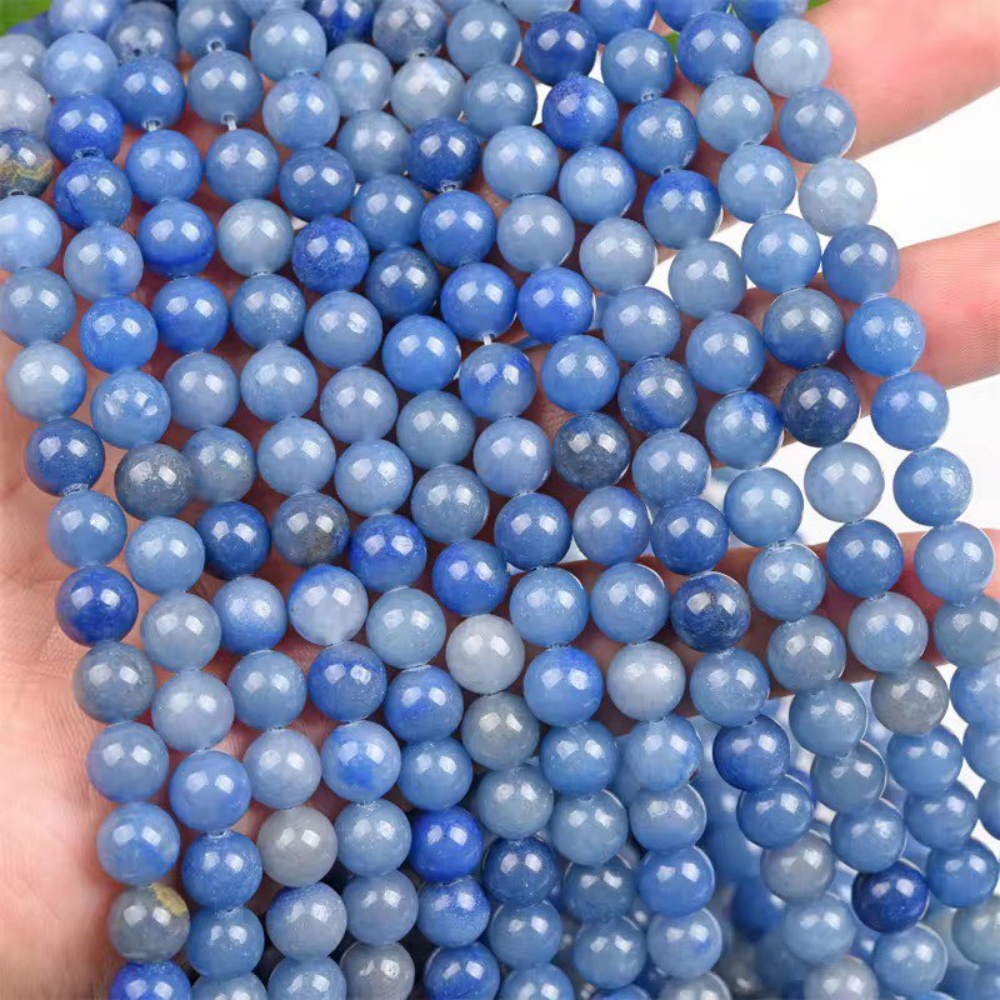 Cuentas redondas de aventurina azul natural de 8 mm, piedra de joyería artesanal.