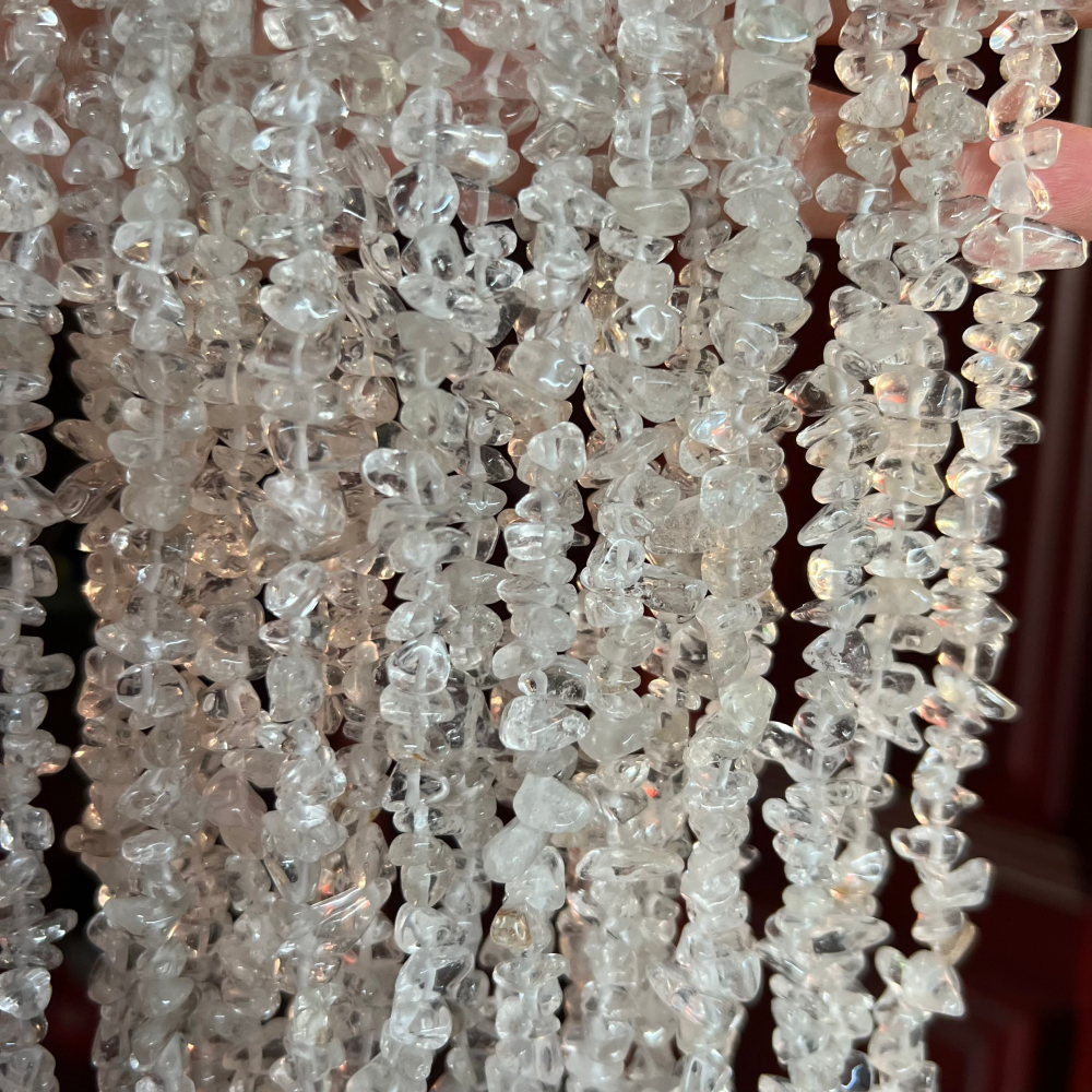 Our Clear Quartz Chip Beads are crafted from carefully selected natural gemstone beads, offering clarity, purity, and a naturally raw appearance that jewelry brands and craft suppliers truly value. Clear quartz has long been associated with balance and energy flow, making it especially popular in chakra healing collections, DIY jewelry, and spiritual-inspired designs. Because each stone remains uncut and naturally irregular, every strand carries a unique, organic character that machine-cut beads simply cannot replicate.