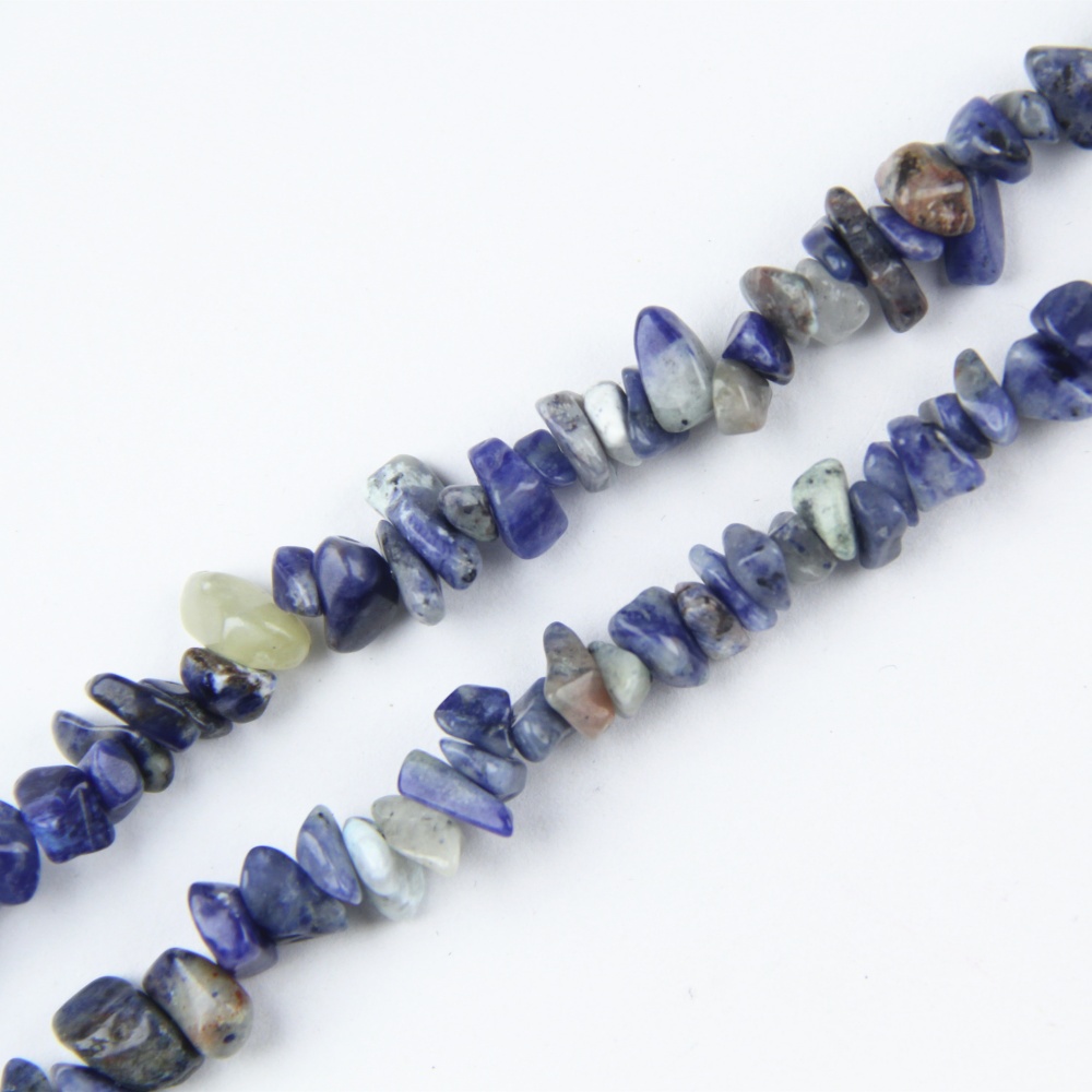 Discover premium Natural Sodalite Nugget Beads (5-8mm) on 80cm drilled strands. These deep blue Natural Sodalite Nugget Beads feature uncut, tumbled surfaces with natural white veining for authentic charm. Versatile sodalite beads and irregular chip beads shine in DIY jewelry, bracelets, necklaces, and healing crystal designs. Our natural gemstone chips promote intuition, calm, and emotional balance—perfect for wellness pieces. As drilled bulk options from a factory with 100+ chip varieties in ample stock, enjoy fast 3-day shipping or 7-14 day custom delivery (e.g., 3-5mm or 9-12mm sizes). Competitive pricing and reliable quality make these Natural Sodalite Nugget Beads ideal for wholesalers seeking high-demand gemstone supplies.