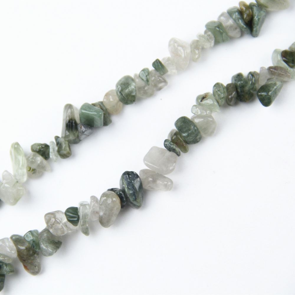In conclusion, our Green Hair Quartz Chip Beads offer the perfect mix of nature and craftsmanship. We invite you to explore our vast collection of Hair Quartz chip Beads today. In addition to our current stock, we constantly update our catalog with new gemstone varieties. Boost your sales with our Authentic Green Rutile Quartz Chip Beads – 5-8mm Irregular Stone Beads.