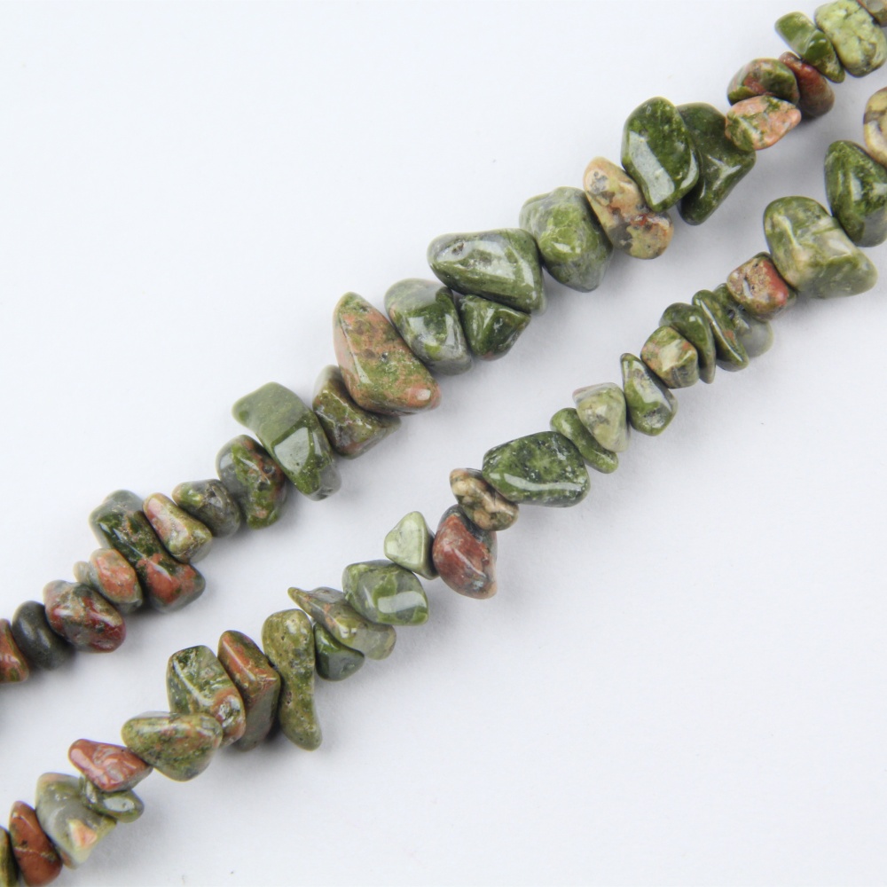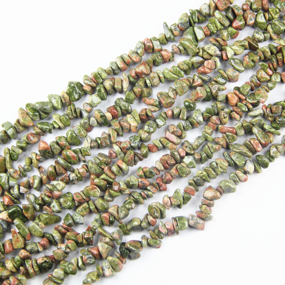Natural Unakite Chip Beads (5-8mm) ideal for crafting beautiful, eco-friendly necklaces and other jewelry items.