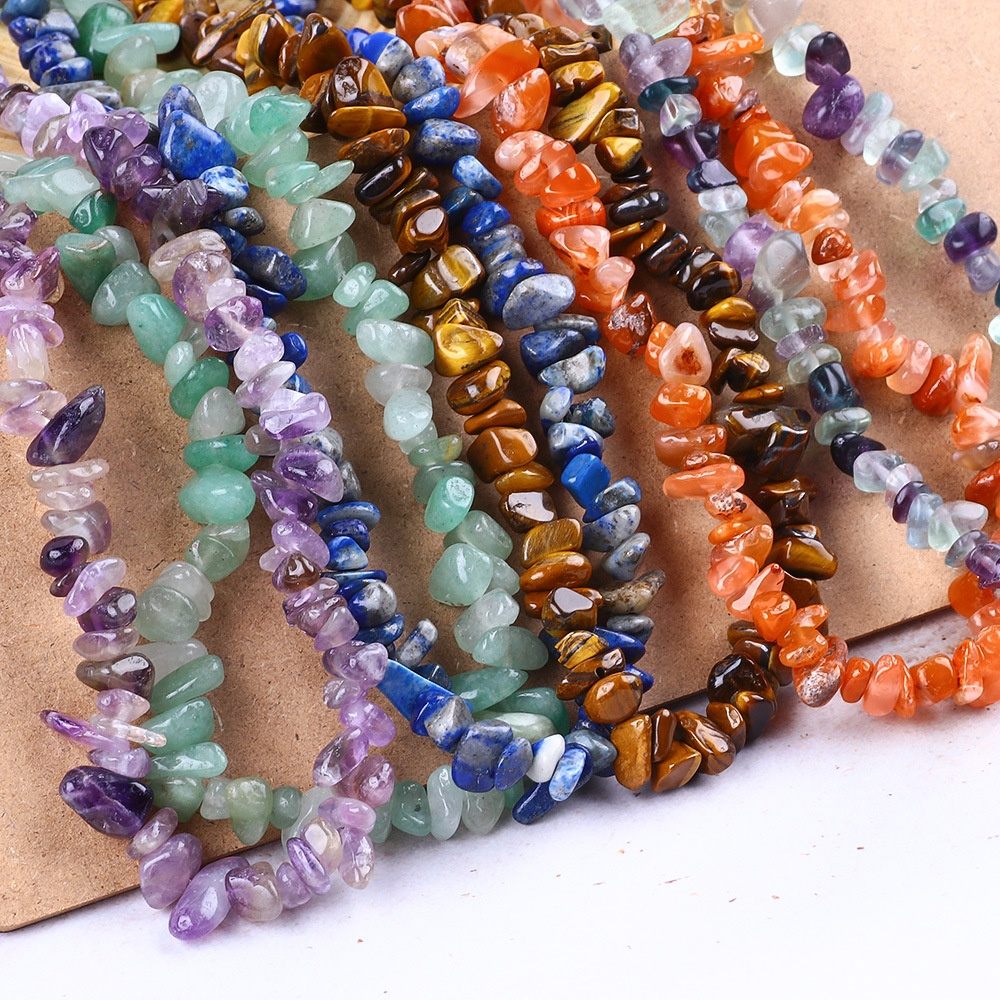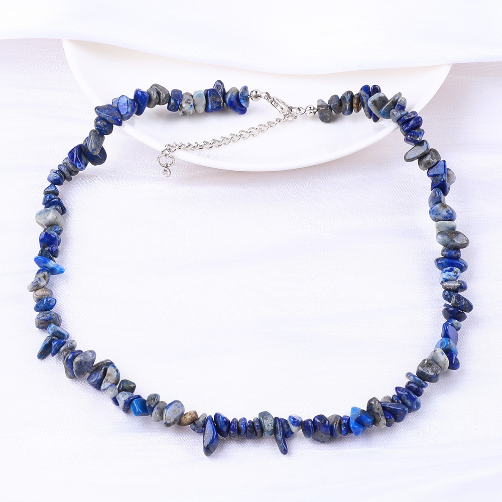 - Material: Natural semi-precious stone chips + alloy or stainless steel chain