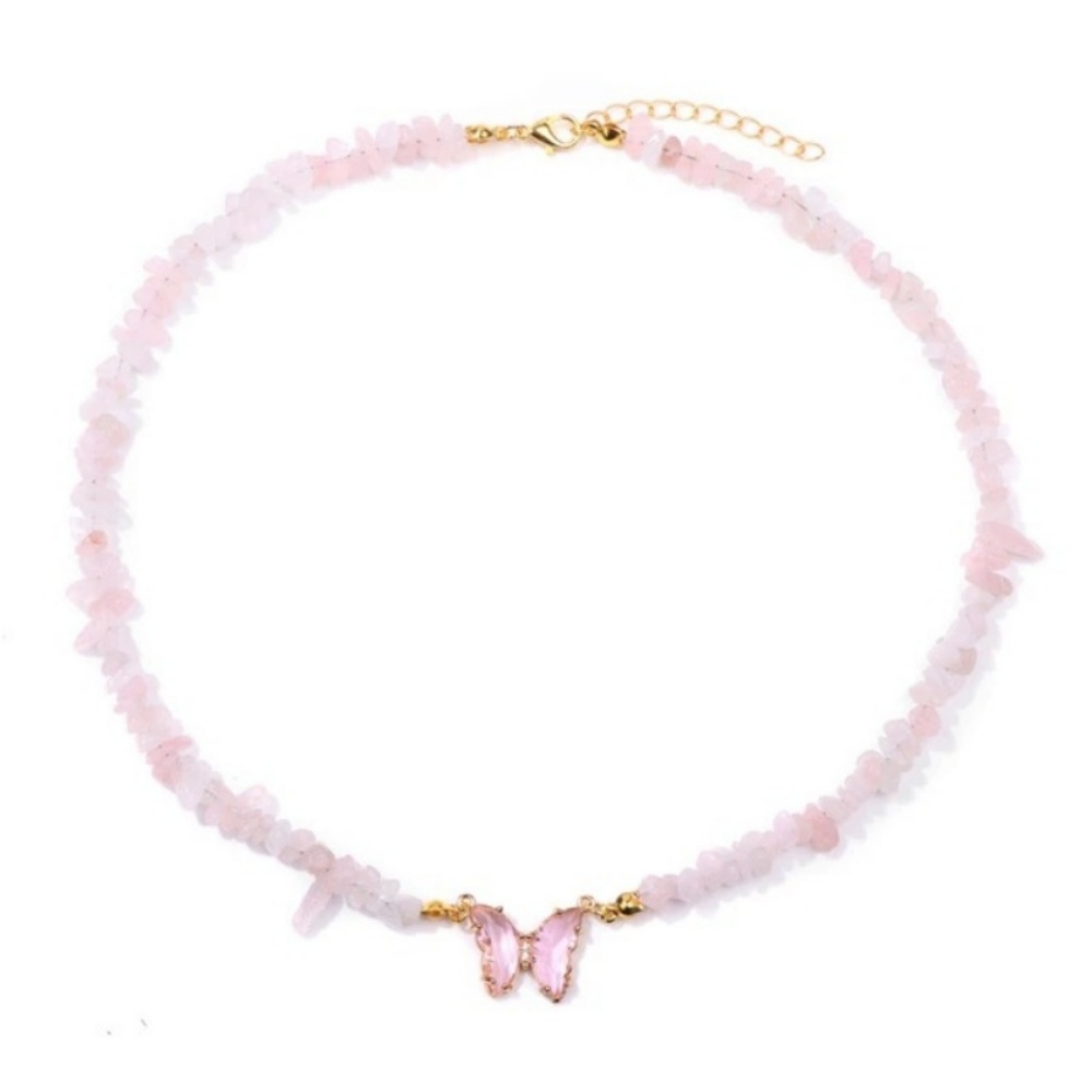 Experience the charm of natural crystals with this Women’s Stone Bead Necklace, featuring 3–5mm irregular chip beads strung along a durable alloy chain and finished with a delicate butterfly pendant. Each bead is drilled and left uncut to preserve its natural form, giving every necklace a one-of-a-kind look. Weighing just 25g with a 45+5cm length, this piece is lightweight yet visually striking, perfect for layering or wearing alone.
